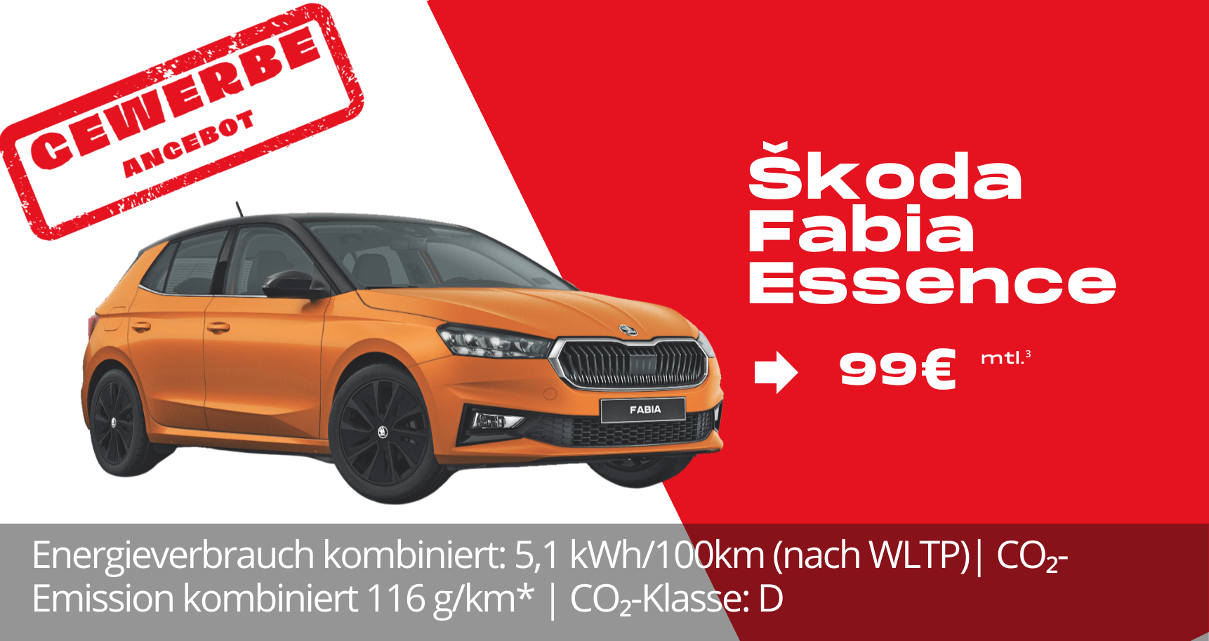 3Ein Angebot der Škoda Leasing, Zweigniederlassung der Volkswagen Leasing GmbH, Gifhorner Straße 57, 38112 Braunschweig, für die wir als ungebundener Vermittler gemeinsam mit dem Kunden die für den Abschluss des Leasingvertrags nötigen Vertragsunterlagen zusammenstellen. Bonität vorausgesetzt. Für Verbraucher besteht ein gesetzliches Widerrufsrecht.