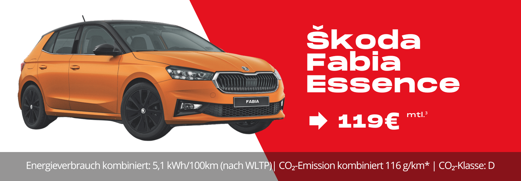 3Ein Angebot der Škoda Leasing, Zweigniederlassung der Volkswagen Leasing GmbH, Gifhorner Straße 57, 38112 Braunschweig, für die wir als ungebundener Vermittler gemeinsam mit dem Kunden die für den Abschluss des Leasingvertrags nötigen Vertragsunterlagen zusammenstellen. Bonität vorausgesetzt. Für Verbraucher besteht ein gesetzliches Widerrufsrecht.